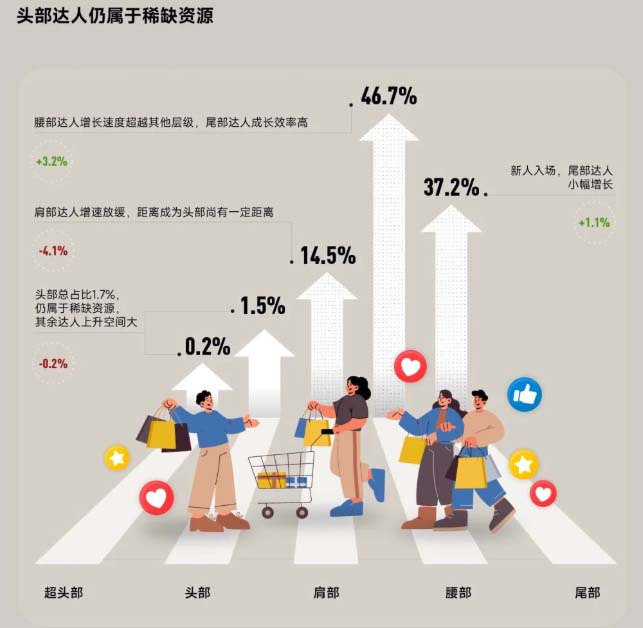 腰尾部达人:内容更原生、数量庞大,通过真实体验分享强化产品利益点,营造“全民推荐”氛围,有效拉动终端转化。